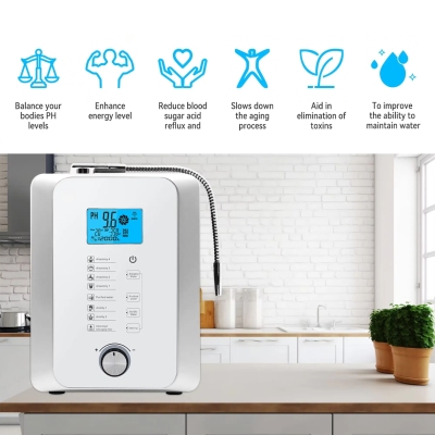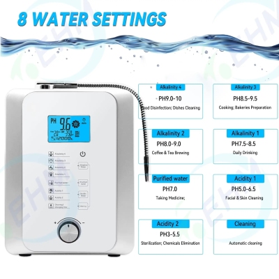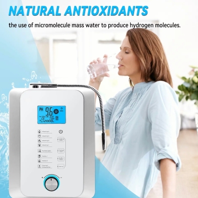 功能特性:弱鹼性小分子團富氫水一機多用鈦鉑金電解板高效產氫即時恆溫加熱系統流量控制旋鈕3.8吋七彩液晶顯示觸控面板智慧語音提示
